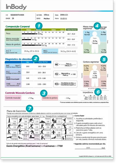 Gordura corporal em excesso. Mesmo que estejam com seu peso na faixa normal, pessoas com esse tipo de corpo estão em maior risco de desenvolver problemas de saúde.O InBody230 analisa todo o corpo e quantifica seus diferentes componentes. Comparando seus valores com as faixas normais fornecidas, avalia-se a composição corporal atual.